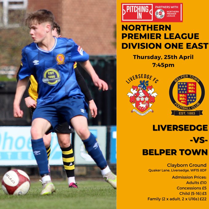 Liversedge are in 10th and can finish as high as 7th - they will steal Belper's place if they win this evening and on Saturday, and other results go their way. Their goal difference is better than all of the teams around them.