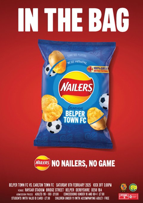 In April 2022 Carlton threatened to derail Belper's promotion push (but didn't) and last season a Cam Johnson goal wasn't enough to stop the points staying in Nottinghamshire before later in the season the Nailers ran out 4-0 winners at the Raygar Stadium.